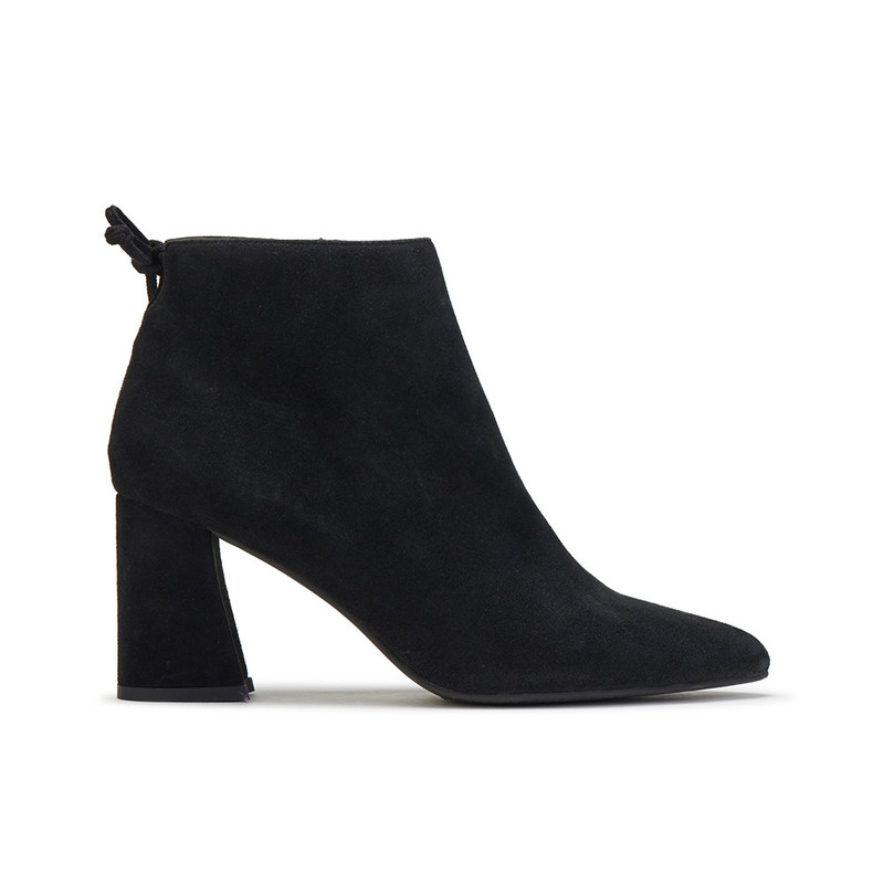 Couro Suécio Negro Dedo pontiagudo Salto grande, Botas de corte alto.